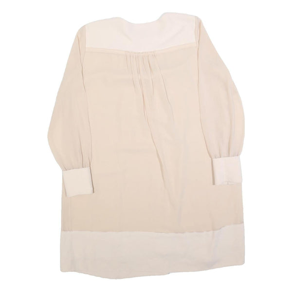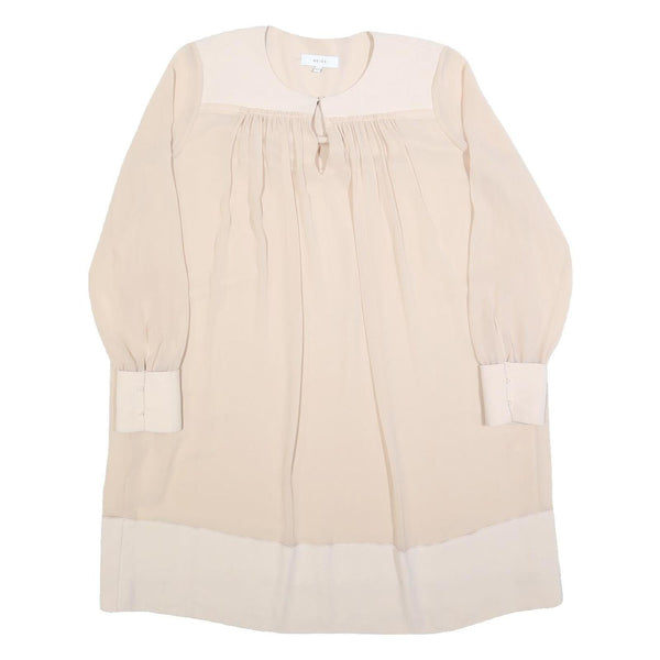 REISS Womens Beige & Cream Day Dress Polyester Blend Long Sleeve Midi UK 14