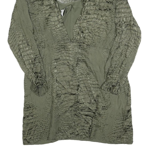 REISS Womens Green Polyester Blend Day Dress UK 12 Textured Long Sleeve Midi