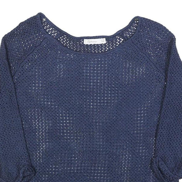 REITUANS Womens Navy Plain Jumper Round Neck Open Knit M Lightweight Stylish