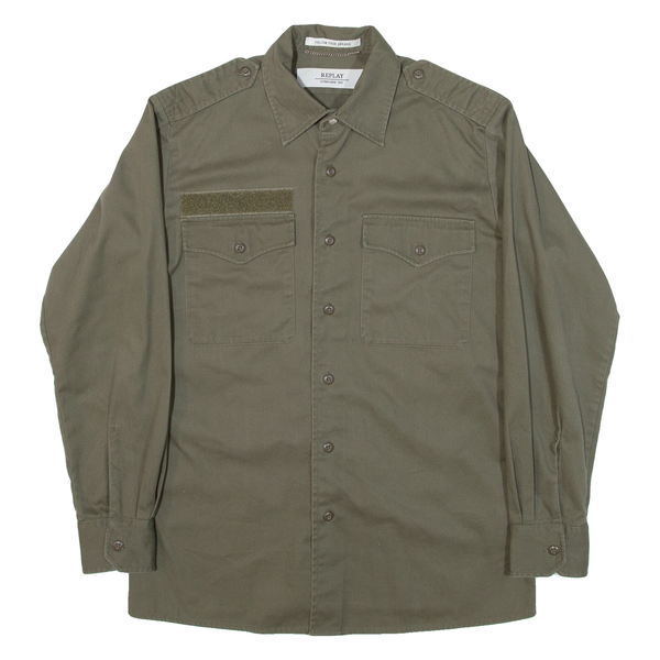 REPLAY Mens Plain Shirt Green Long Sleeve XS