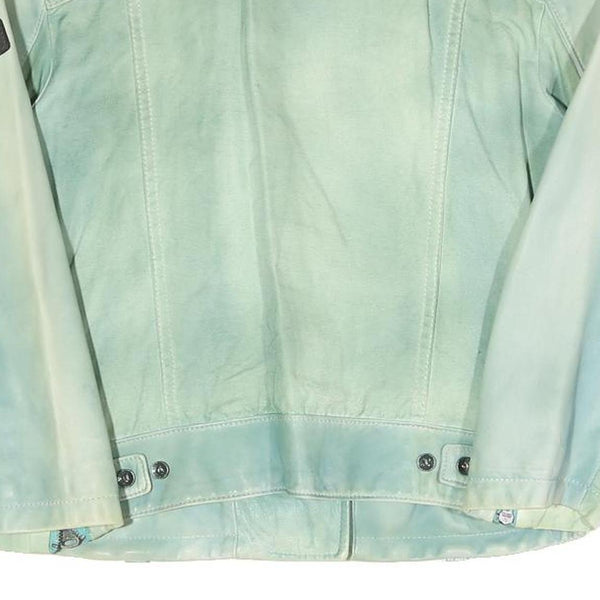 REPLAY Womens Blue Leather Biker Jacket L Zip Fastening Stylish Casual