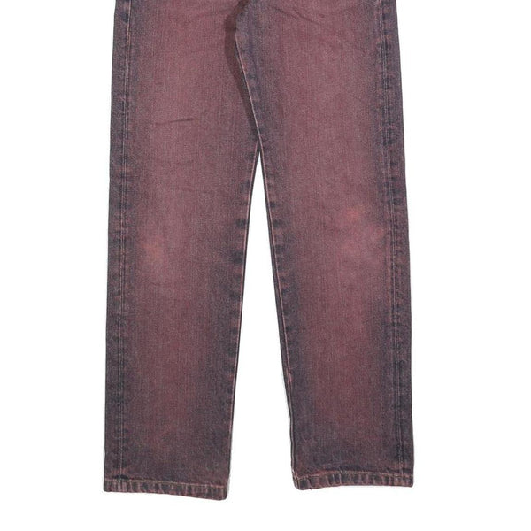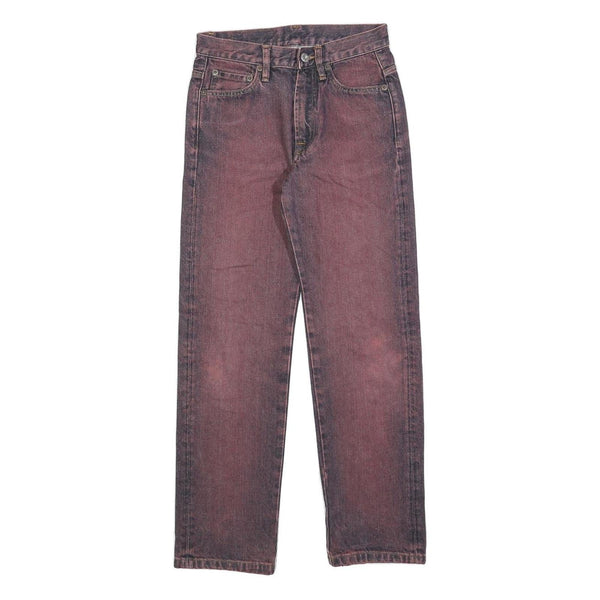 These Replay womens jeans feature a unique rinse wash giving them a distinct faded purple appearance with darker contrasting areas along the seams and edges. The straight leg cut offers a classic fit and traditional styling with a zip closure and classic five-pocket design.