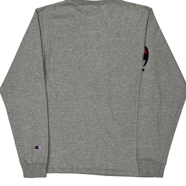 Reverse weave champion spellout long sleeve t-shirt - medium grey cotton