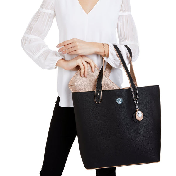 The reversible vegan tote by Giovanna Sessi-Knott, designer of the innovative The Morphbag by GSK set, has been created to adapt to the styling needs of the modern woman..