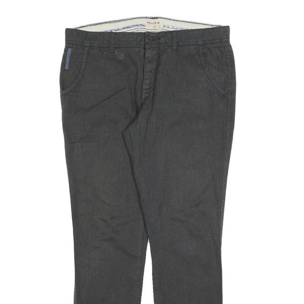 These REVIEW mens trousers feature a solid black colour crafted from a soft cotton blend fabric, offering durability with a comfortable feel. The trousers have a slim fit with a straight leg cut, designed to provide a modern and flattering silhouette.