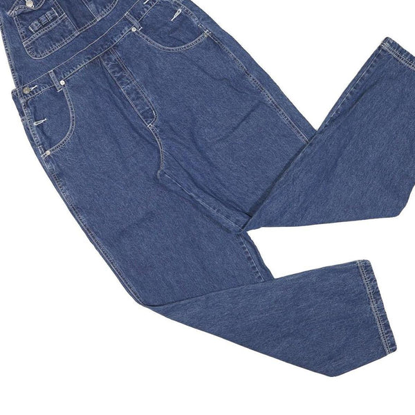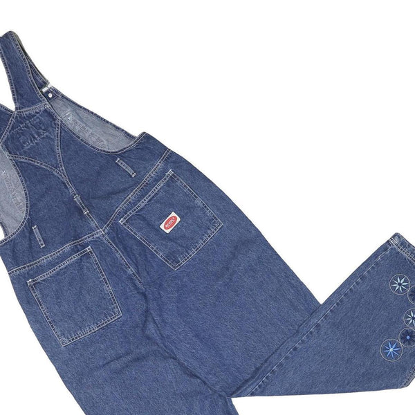 REVOLT Womens Blue Cotton Blend Denim Dungarees Loose L W34 L31 Embroidered