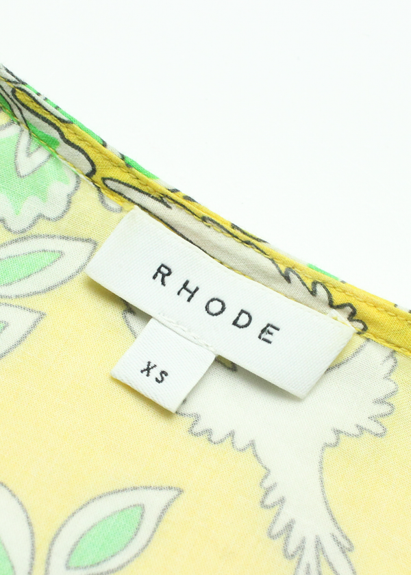 Home RHODE Birds Womens Wrap Dress Yellow Floral Short Sleeve Long XS