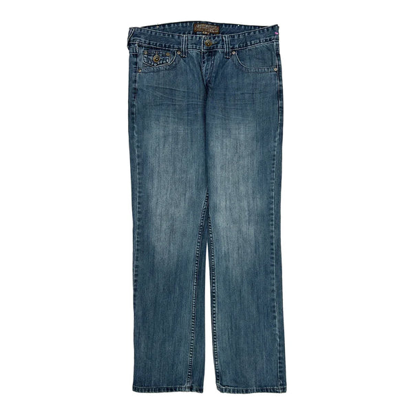 Riders Jeans, fit a 33″ Waist and 32″ inseam.