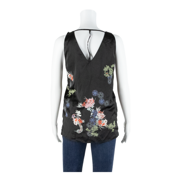 RIVER ISLAND Womens Printed Vest Black V-Neck Sleeveless Floral UK 12