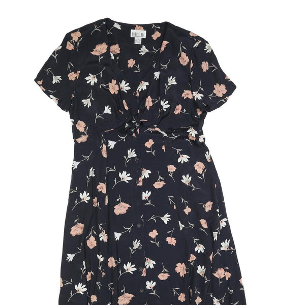 ROBBIE BEE Womens Black Floral Day Dress Cotton Blend Short Sleeve Midi L
