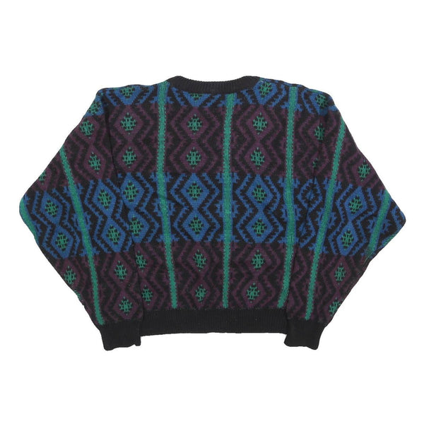 ROBERT BRUCE Womens Black Purple & Blue Patterned Jumper Crew Neck Chunky Knit M