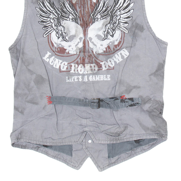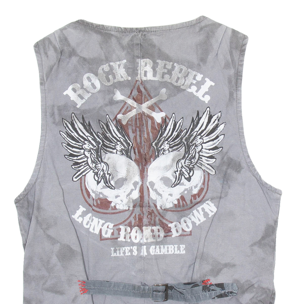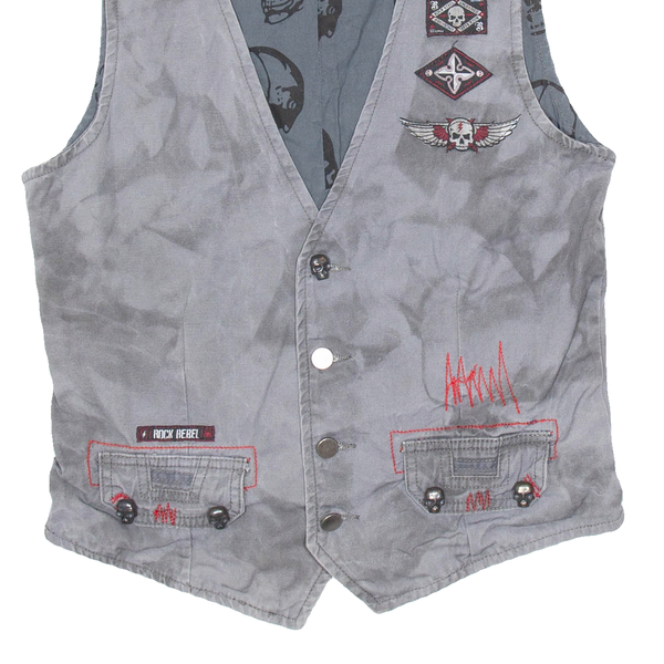 ROCK REBEL Mens Denim Waistcoat Grey S