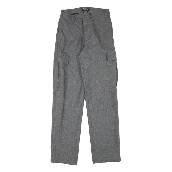 ROOTS Mens Wool Grey Regular Cargo Trousers W26 L30 Stylish Zip Closure