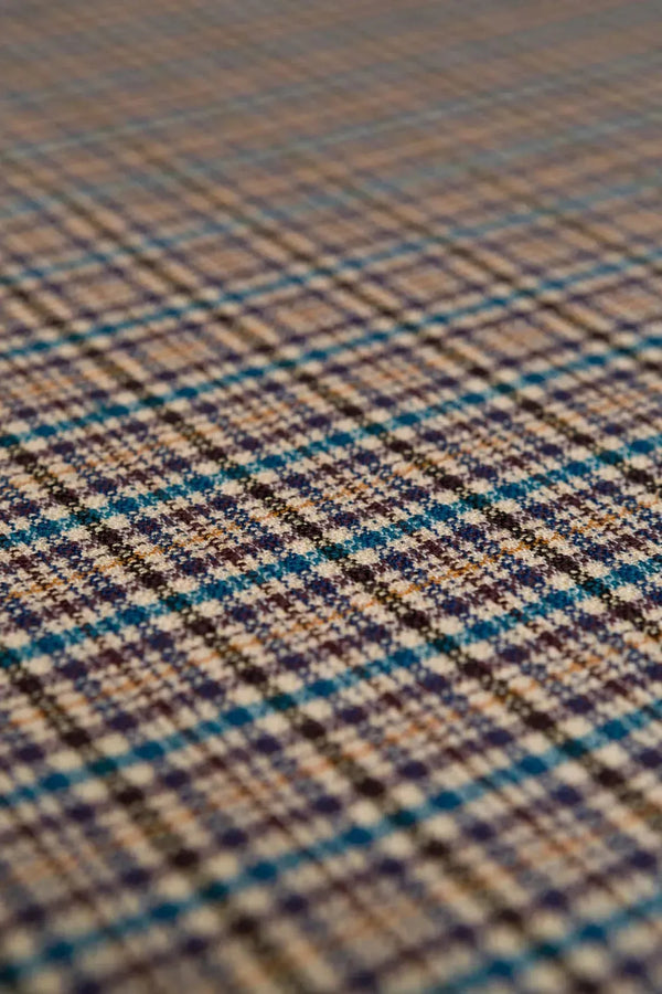 The Rowan flat cap features a structured peak. Handcrafted in England from checked wool blend fabric and finished with a funky check lining. This piece is made from roll-end fabric, consuming excess within the fashion industry before it becomes waste. As a result, we will make less than 30 pieces of this style.