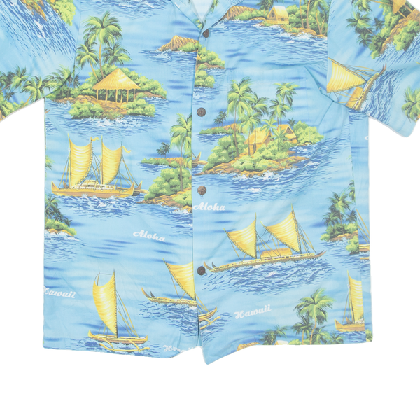 ROYAL CREATIONS Mens Hawaiian Shirt Blue Crazy Pattern M