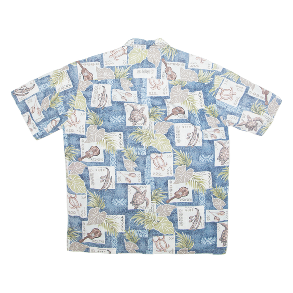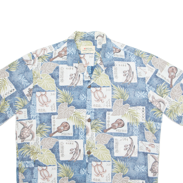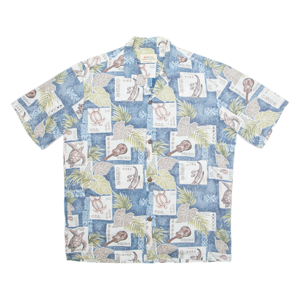 ROYAL Mens Hawaiian Shirt Blue Crazy Pattern L