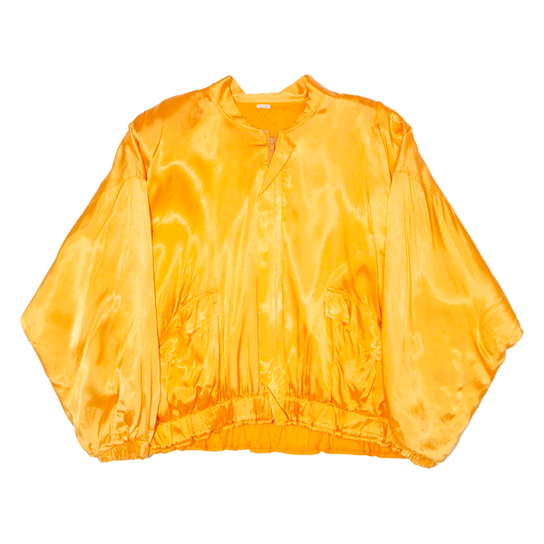 Ruched Trim Womens Bomber Jacket Orange 80s XL