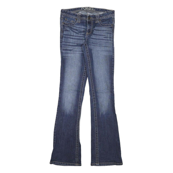 RUE21 Womens Jeans Blue Slim Flared Denim Medium W28 L32 Stylish Stitching
