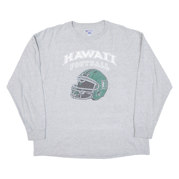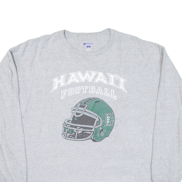 RUSSELL ATHLETIC Hawaii Football Mens T-Shirt Grey Long Sleeve USA L