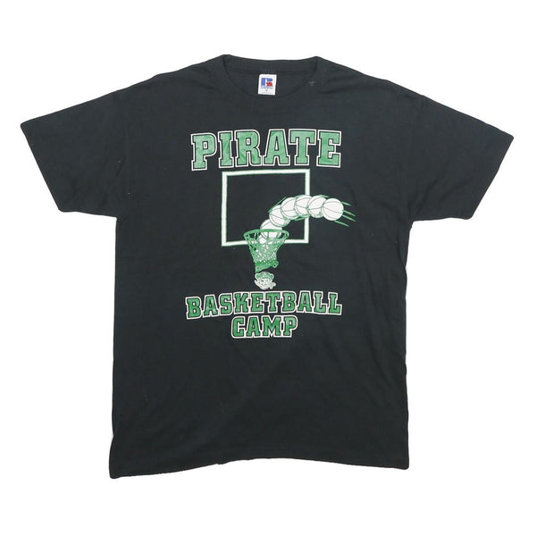 RUSSELL ATHLETIC Mens Black Pirate Basketball Camp T-Shirt M Short Sleeve Crew