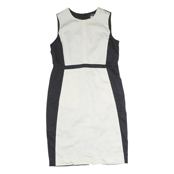 This S MAX MARA womens dress features a classic black and cream colour block design for a timeless and elegant look. The sleeveless style with a round neckline offers a sophisticated silhouette suitable for various occasions.