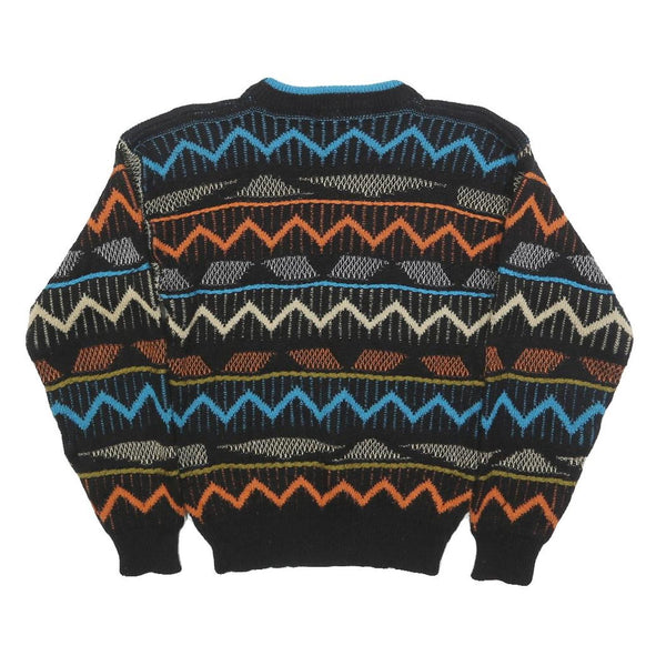 SAFE PASSAGE Womens Black Blue Orange Patterned Jumper Crew Neck M Acrylic Knit