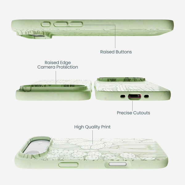Embrace the desert vibes with the Cacti Phone Case! This charming design features an intricate array of cacti illustrations in various shapes and sizes, set against a soothing sage green background. Perfect for plant lovers and desert dreamers, this case offers durable protection for your phone while celebrating the beauty of these resilient, spiky wonders. Let your phone stand out with this unique and whimsical case that brings a touch of the wild, rugged desert wherever you go!