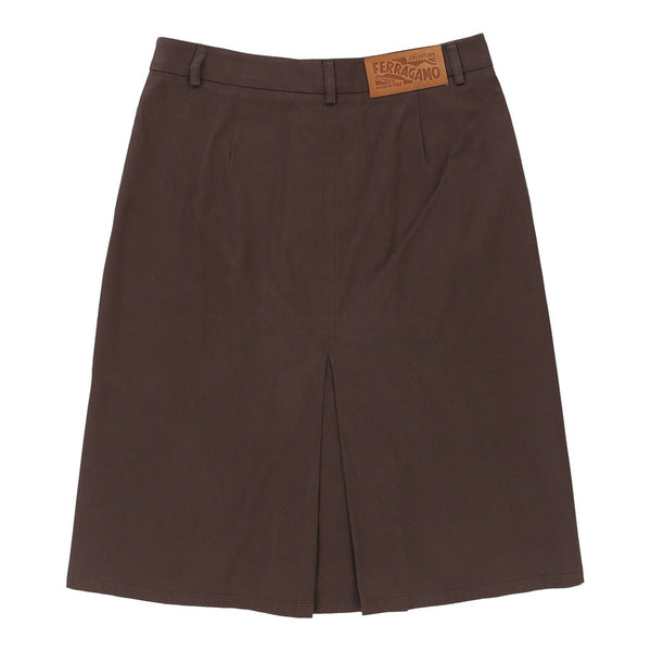 Salvatore Ferragamo Midi Skirt - 30W UK 10 Brown Cotton