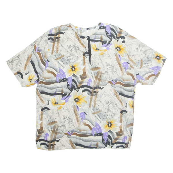 SCHILD Womens Printed Blouse Beige Button Neck Floral UK 14