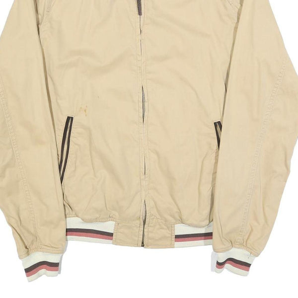 SCOTCH & SODA Mens Beige Cotton Blend Bomber Jacket L Plain Striped Ribbed