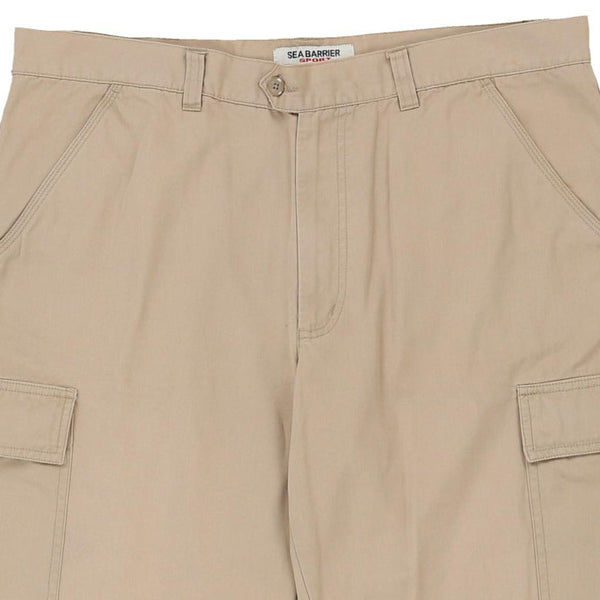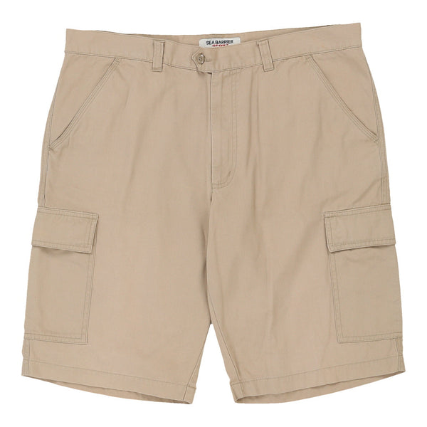 Vintage Sea Barrier beige cargo shorts, fit a 38" waist and 11" inseam.