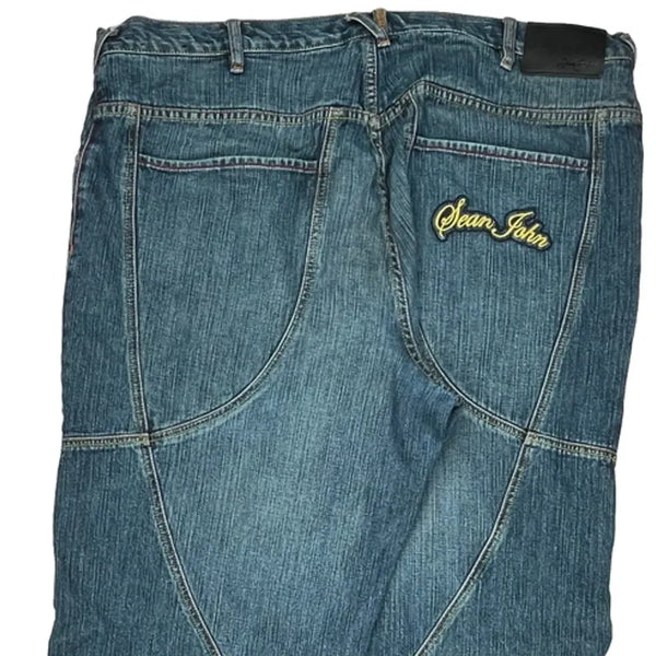 Sean John Jeans With Unique Stitching And Embroidered Logo On Back Pocket.