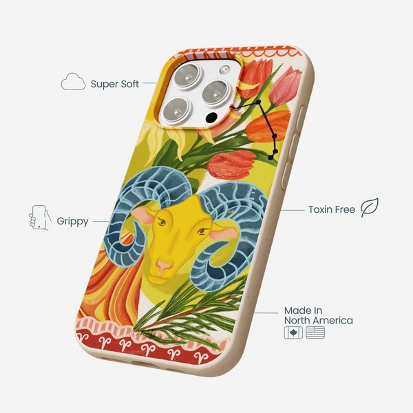 Show off your fearless energy with the Aries Ram Phone Case from our Zodiac Collection! Featuring the iconic ram with celestial constellations, blooming tulips, and warm, fiery tones, this design embodies the passion and determination of every Aries. Perfect for the bold leaders and go-getters of the zodiac. ♈