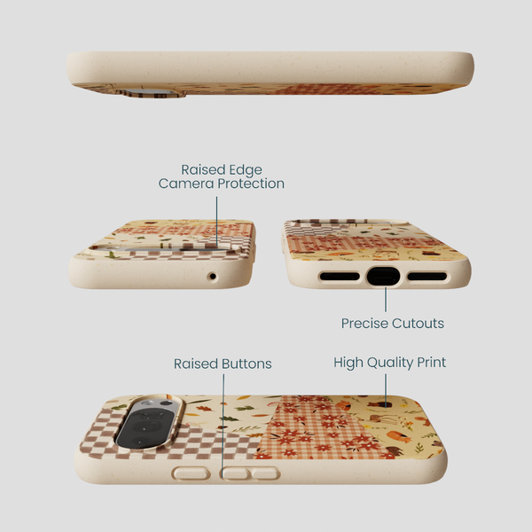 Envelope your device in the warmth of the Autumn Quilt Phone Case from our Cozy Core Collection, where the essence of fall is captured in every stitch of its design. This case blends a checkered pattern with the natural tapestry of fall, featuring crisp leaves, acorns, and the fauna of the forest. Each segment is like a patch in the quilt of autumn, telling a story of harvest and harmony.