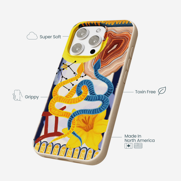 Embrace your duality with the Gemini Twin Phone Case from our Zodiac Collection! Featuring vibrant intertwined serpents, cosmic constellations, and bold florals, this design perfectly captures the dynamic, curious energy of every Gemini. With striking colors and intricate details, it’s a stylish nod to your horoscope’s playful and adaptable nature. ♊✨
