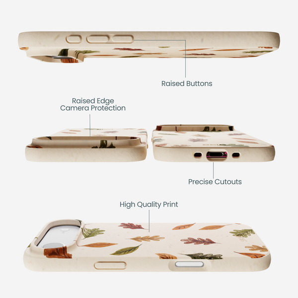 Catch those cozy fall vibes with every call. The Harvest Hues Case is sprinkled with colorful autumn leaves in rich reds, golds, and greens—like a crisp stroll through the pumpkin patch, but pocket-sized. It’s the perfect way to keep your phone looking festive while you sip cider, crunch leaves, and show off your fall ‘fit.
