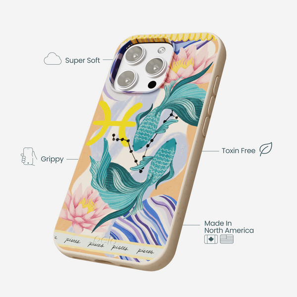 Swim into your mystical side with the Pisces Fish Phone Case from our Zodiac Collection! Featuring two flowing fish, cosmic constellations, and dreamy lotus blooms, this design perfectly captures the creative and intuitive spirit of Pisces. With soft, oceanic tones and celestial charm, it’s the ultimate horoscope-inspired accessory for those who love to go with the flow. ♓✨