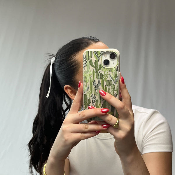 Introducing the Succulent Cacti Phone Case, a vibrant tribute to the resilient beauty of the desert, from the Coastal Cowgirl Collection by Pela. The intricate design, featuring a variety of cacti, brings a piece of the arid desert to your daily life, adding a touch of nature's artistry to your tech.