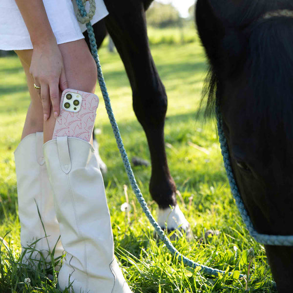 Unleash your inner noble steed with The Knight Phone Case by Pela! Adorned with a regal pattern of gallant horse profiles in striking red, this case is perfect for anyone with a spirit of adventure and a love for all things equestrian. Whether you're cantering through your day or charging into new challenges, this case adds a touch of chivalry and elegance to your style. Gallop into greatness with The Knight Phone Case!