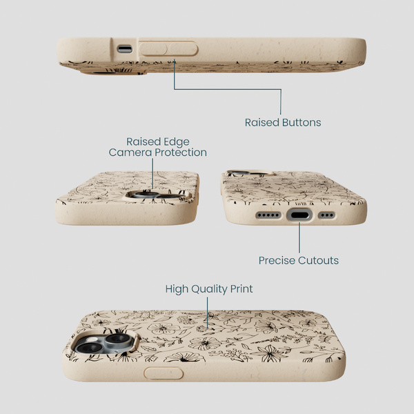 Bring the beauty of nature to your everyday with the Wild Flower Phone Case, part of the Pela x Ollie Smither Artist Series Collection! Featuring Ollie Smither's delicate black-line illustrations of wildflowers, this case is a tribute to untamed beauty and effortless charm.