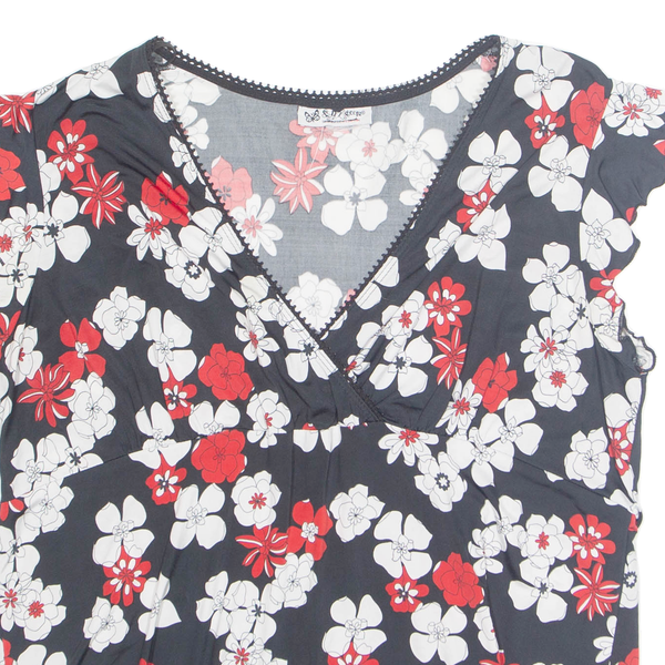 SELF-ESTEEM Womens Printed Blouse Black V-Neck Floral XL
