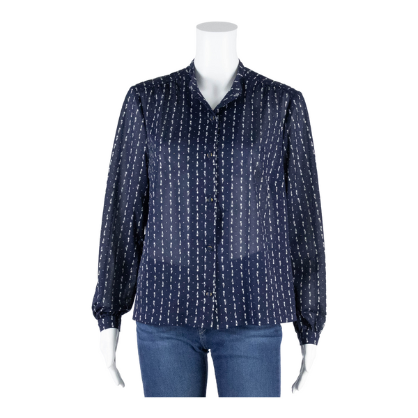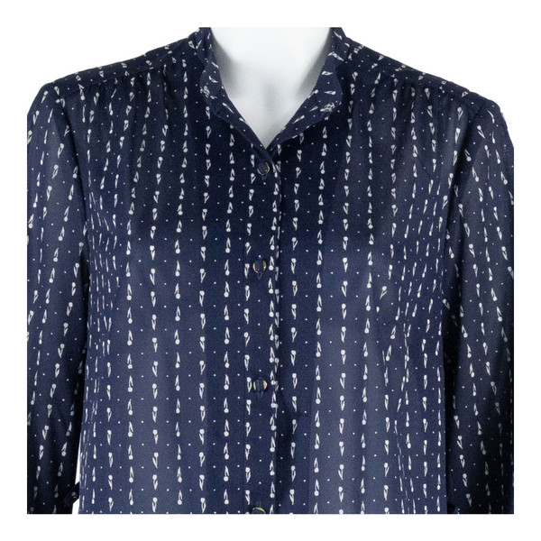 Semi Sheer Womens Shirt Blouse Blue Collared Long Sleeve Floral L