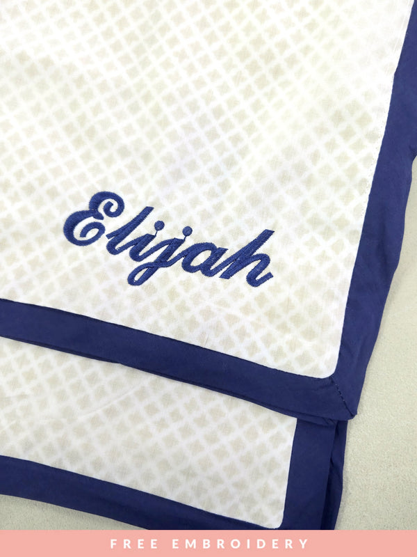 Enjoy complimentary personalization on our signature Malabar Baby Dohar blankets. An absolute favorite baby shower and newborn gift. Please note that if you opt for personalization, you order will ship after 7-10 business days and is final sale.