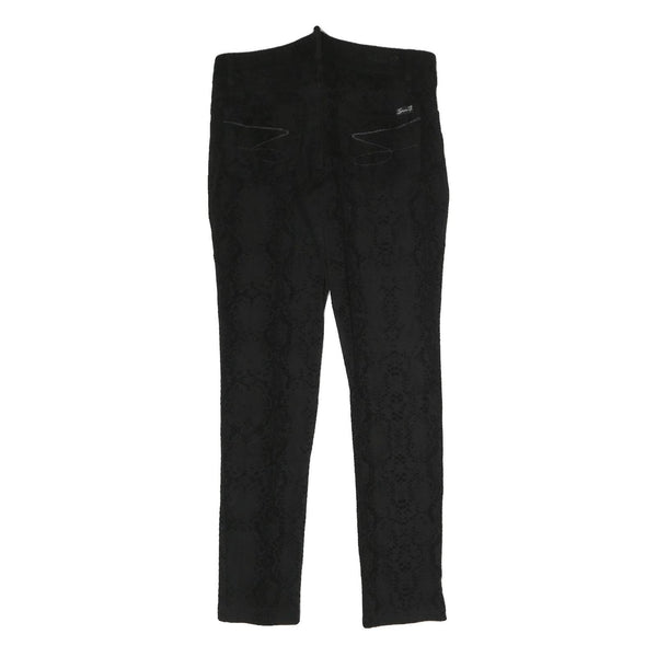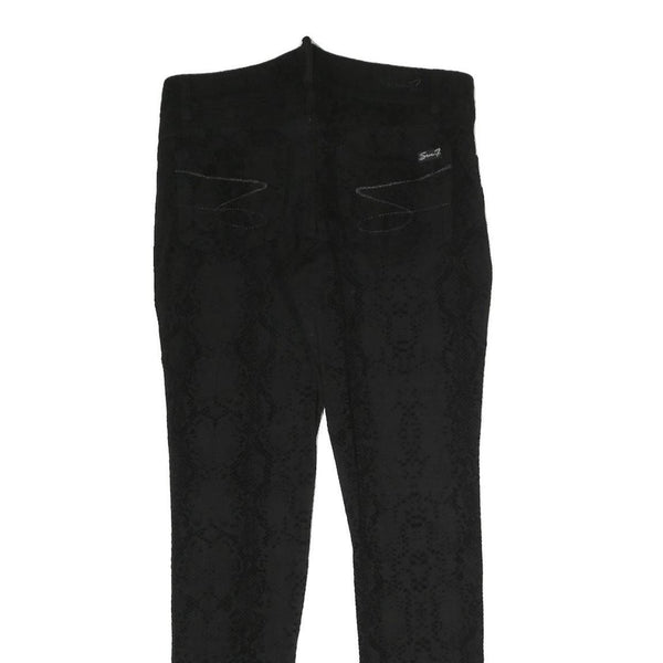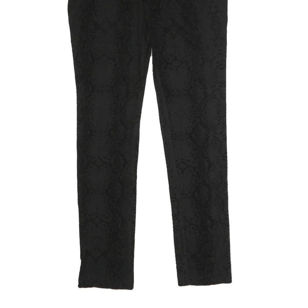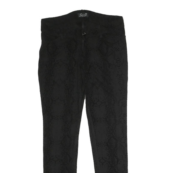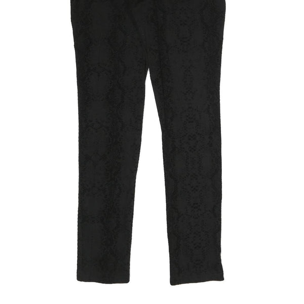 These SEVEN7 womens trousers are crafted from a comfortable cotton blend fabric in a sleek black colour. They feature a subtle snake print pattern adding a chic textured visual effect. The slim fit design provides a flattering silhouette with a skinny leg style for modern shape and length.