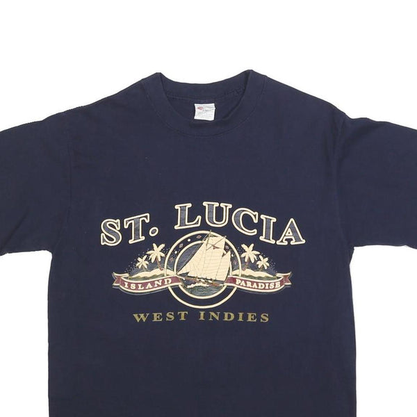 SHAM'S Womens Navy Blue St Lucia Island Paradise Graphic T-Shirt M Short Sleeve