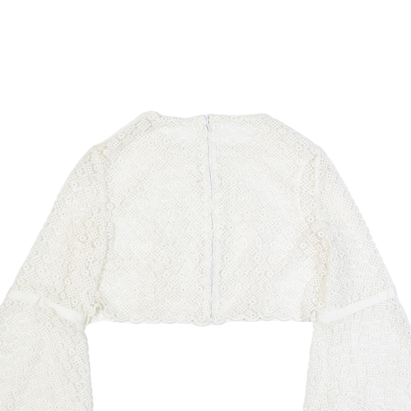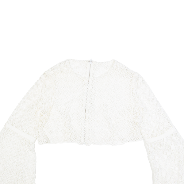 Sheer Floaty Womens Cropped Top White Long Sleeve S