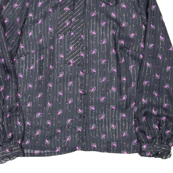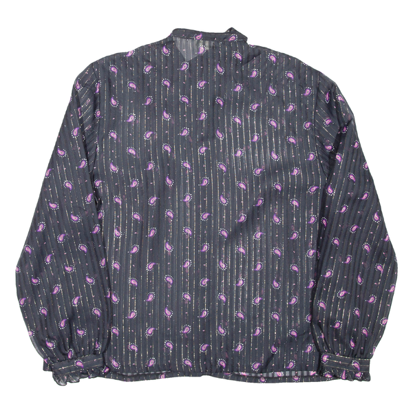 Sheer Womens Printed Blouse Black High Neck Long Sleeve Paisley L