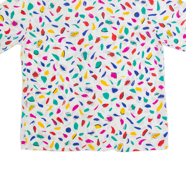 Sheer Womens Printed Shirt White Collared Crazy Pattern S