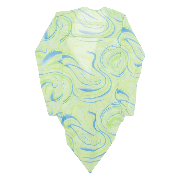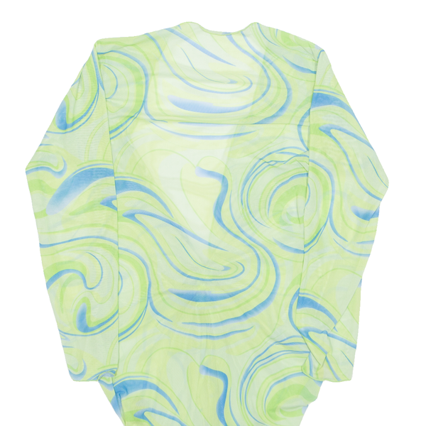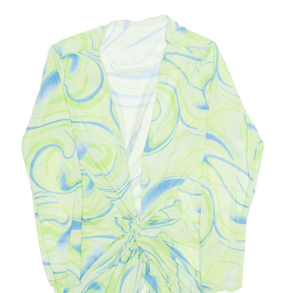 Sheer Womens Printed Top Green V-Neck Long Sleeve Crazy Pattern M