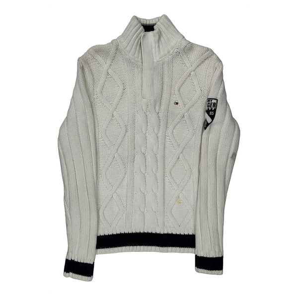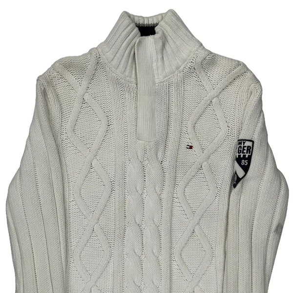 Home Shield Patch On Sleeve Tommy Hilfiger 1/4 Zip - Medium White Cotton